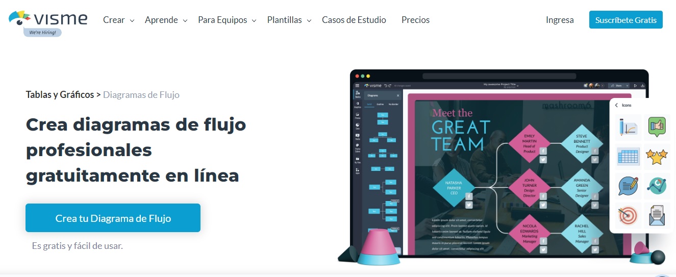 Ofrece diagramas de flujo online gratis que puedes editar en minutos