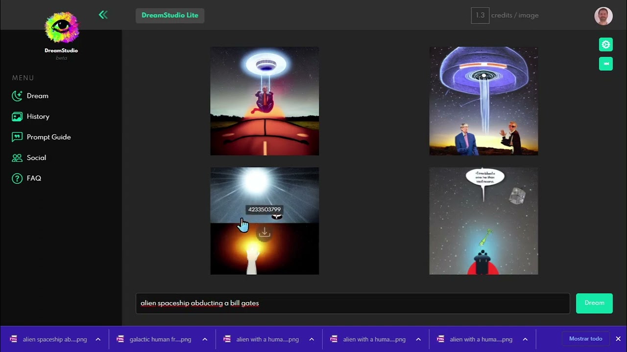 La versión beta abierta de DreamStudio es una interfaz fácil de usar para crear imágenes utilizando el modelo de generación de imágenes Stable Diffusion por Inteligencia Artificial, pudiendo crear imágenes de alta calidad de cualquier cosa que puedas imaginar en segundos, simplemente escribiendo un mensaje de texto y presionando el botón DREAM.