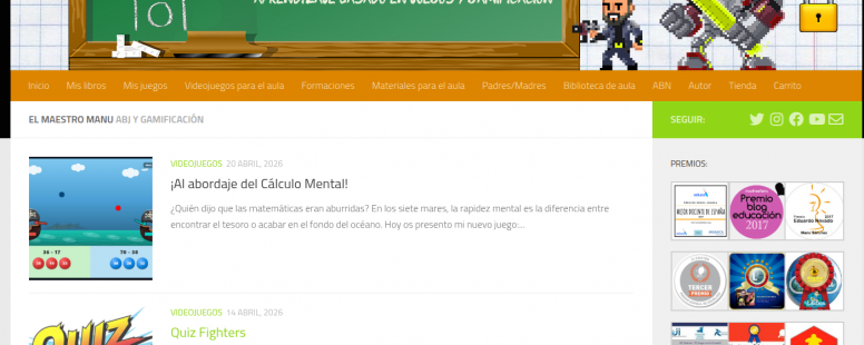 Elmaestromanu.com es la plataforma educativa de Manu Sánchez Montero, centrada en recursos de Aprendizaje Basado en Juegos (ABJ) y gamificación para Educación Primaria. El sitio ofrece juegos propios, materiales descargables y proyectos para el aula, destacando herramientas como Monster Kit.