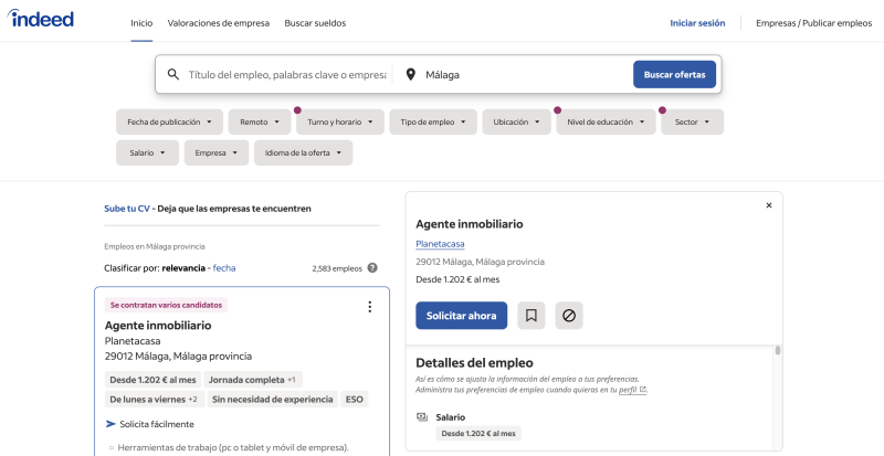Página web de empleo con más de 350 millones+ de usuarios únicos mensuales. Indeed se esfuerza por dar prioridad a los candidatos, ofreciéndoles acceso gratuito al sitio para que busquen empleos, publiquen CV e investiguen a las empresas.