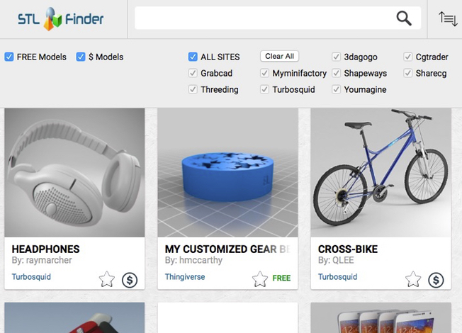 STL Finder es un motor de búsqueda en línea para encontrar archivos de modelo 3D en diversos repositorios de la web, como Thingiverse, Cults3D, y MyMiniFactory, que sirven para impresión 3D.