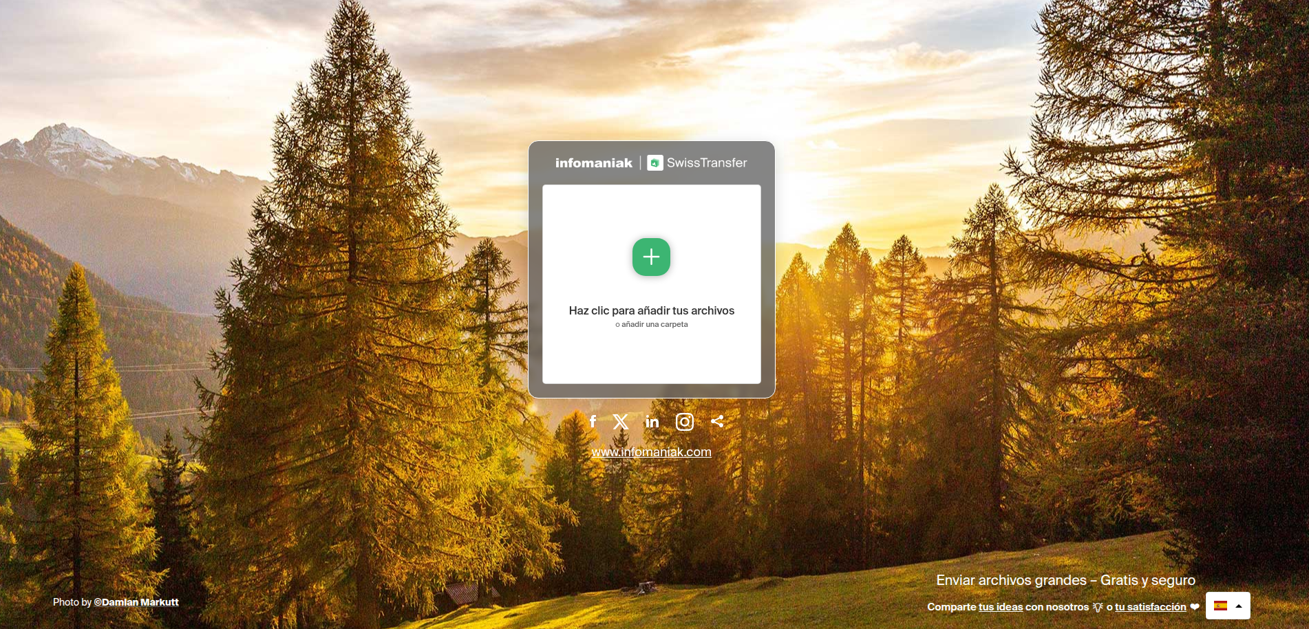 SwissTransfer es una plataforma segura y gratuita que permite enviar archivos de gran tamaño (hasta 50 GB) sin necesidad de registrarse. Ofrece un servicio respetuoso con la privacidad, almacenando los archivos en servidores suizos, con opciones para proteger las transferencias con contraseña y establecer una fecha de caducidad para los enlaces de descarga.