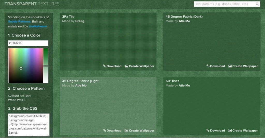 - Previsualización: El sitio permite ver cómo quedará la textura con diferentes colores antes de descargarla o copiar el código